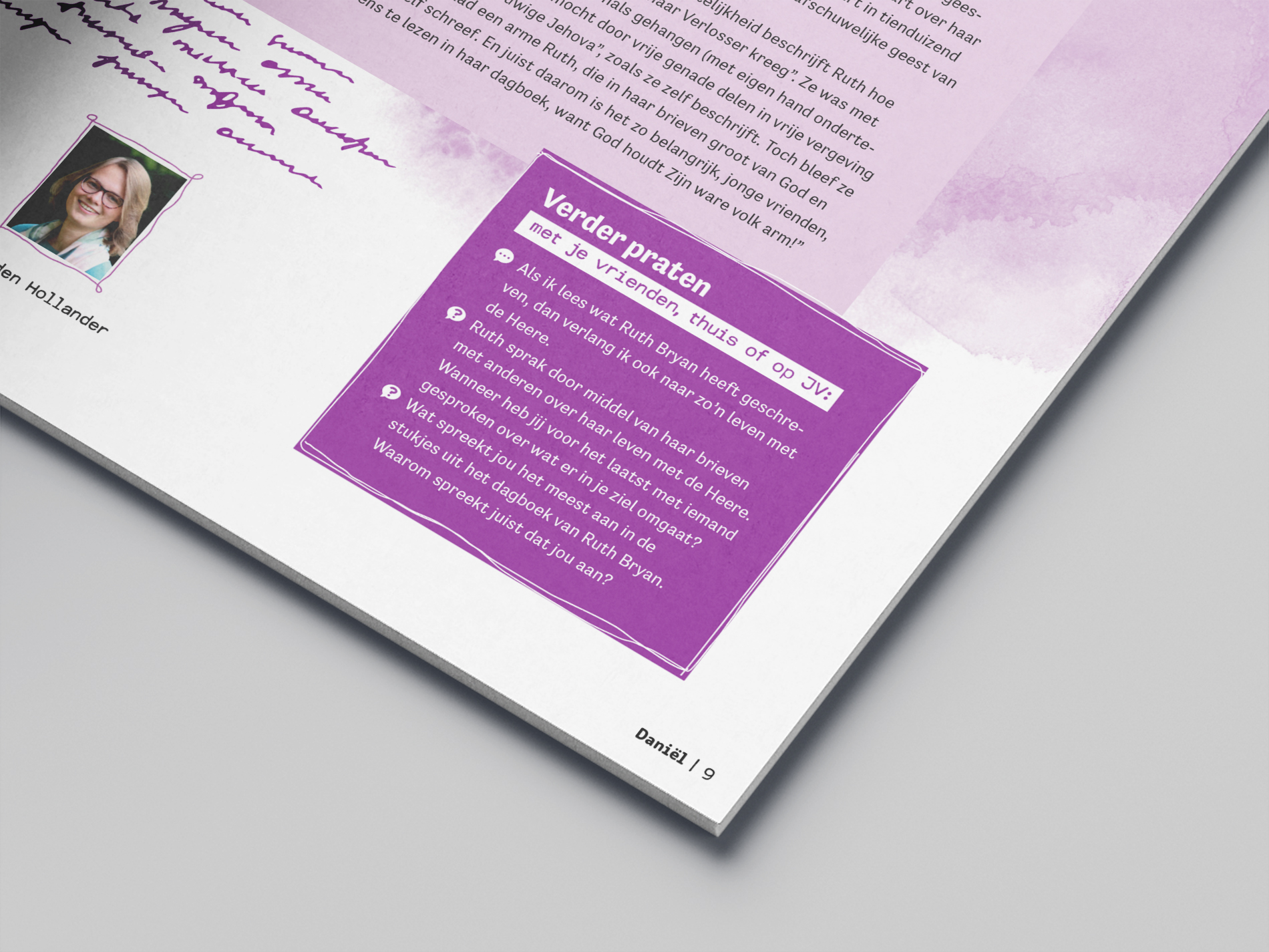 Een van de belangrijkste thema’s bij de restyle was betrokkenheid. Hoe krijgen (en houden) we de jongeren betrokken bij de kerk, en welke rol speelt de JBGG daarin? Vanuit die gedachte hebben we een aantal toevoegingen aangebracht om jongeren en hun sociale netwerk uit te dagen om (zowel online als in real-life) na te denken en te praten over wat ze lezen in Daniël.
