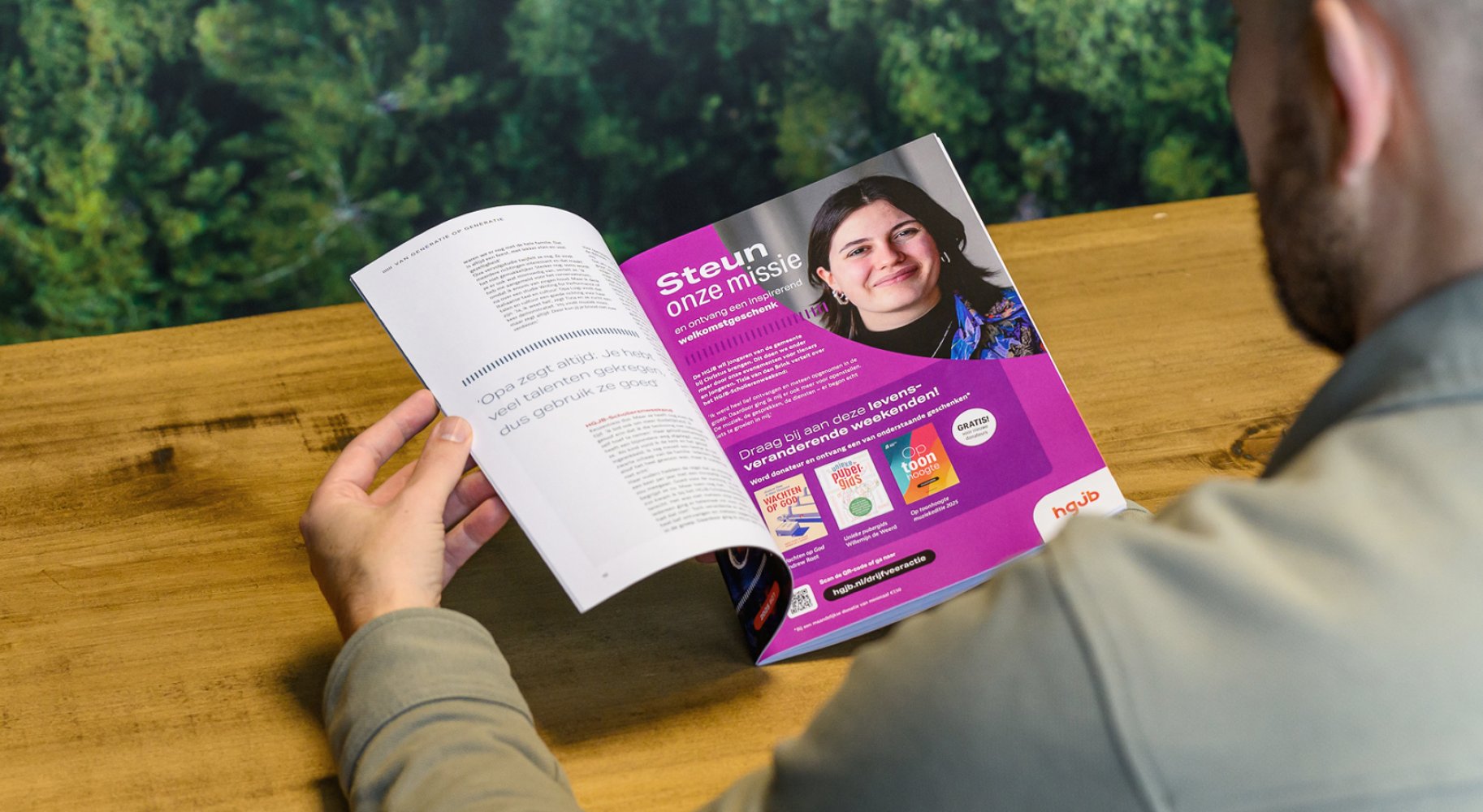 Kortom, een grote organisatie met een mooie missie. Omdat de tijd daarvoor rijp was, ontwikkelden we een logo, huisstijl, iconen en zorgden we voor de uitwerking in communicatie uitingen. Het resultaat? Een toekomstbestendige stijl met de juiste sfeer, kleuren en uitstraling richting 'het hart van jongeren'.